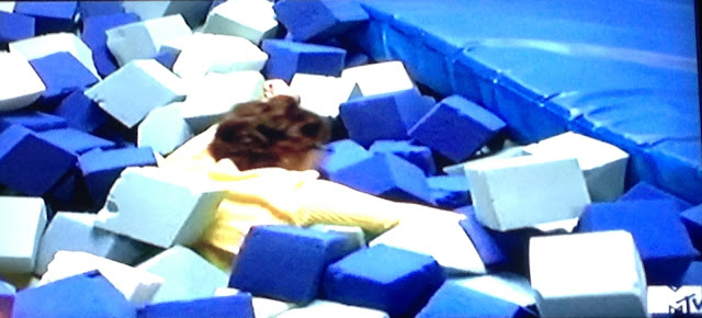 mnastics place ASAP because he feels the need to use the trampoline. Babs greets him with her usual "Oh... hi Keefuh." Barbara gets stuck in the foam pit. Hehe! Jenelle lifts her shirt and exposes her belly for the duration of the party. Classy. She puts her shirt down long enough to tell Babs that her bank account is negative 600. Thats right...-$600. This is all because she was spending too much money on marijuana. Gary tried to warn her, but at least now she's staying clean because she can't buy any.